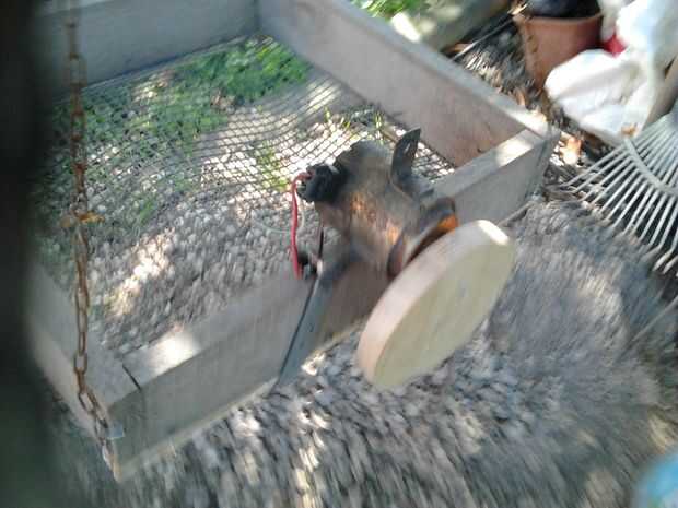 Corrí y luego la conexión, a través de un cable de dos hilos (respetando la polaridad) del motor a la batería de 12 v, utilizando un sistema muy básico de decir la verdad: con dos ropa ropa pines convenientemente adaptado para el propósito.