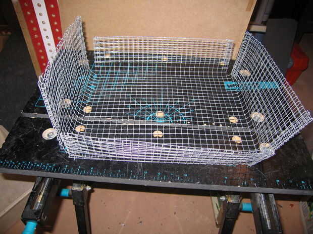 Lugar dentro de la caja de basura otra vez para comprobar el ajuste. Todos los bordes deben ser relativamente completa ahora. Supongo que usted podría hacer los lados aún mayores, pero que sería limitado por el tamaño del rollo de malla original. Solo necesita ser lo suficientemente alto para ser superior a la basura así que usted puede tomar.