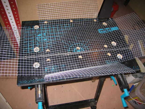 Con las esquinas del corte, se puede ver donde el adicional 24 pulgadas fue agregado para formar lo que serán los lados. 12 pulgadas a cada lado.