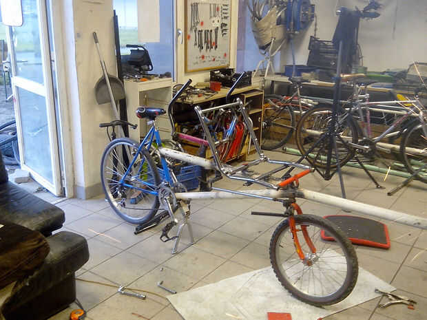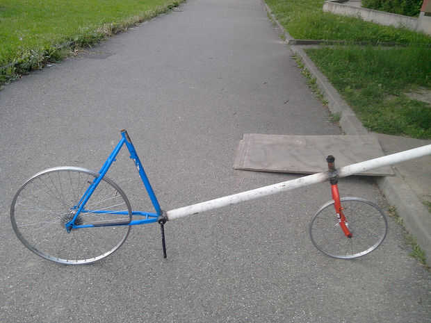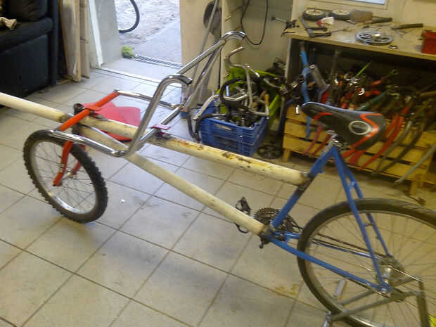 Para construir el marco, es necesario mantener sólo el triángulo trasero de la bicicleta de montaña.