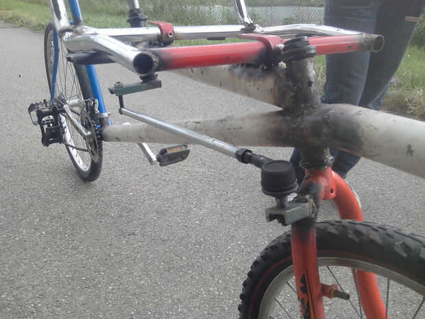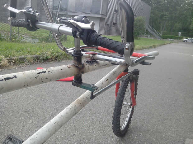 Esta bola de dirección también se enrosca en un tubo delgado. Soldó con autógena el perno en el tubo fino. Gracias a ello, puedo desmontar la bola manejo y ajustar la longitud del tubo (y por lo tanto, ajustar su dirección).