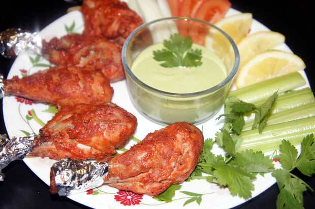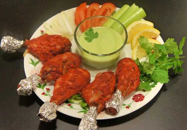 Pollo de tandoori está un plato indio popular, que consiste en pollo asado preparado con yogurt y especias. El nombre proviene del tipo de horno cilíndrico de barro, un tandoor, en el que tradicionalmente se prepara el plato. (Gracias a Wikipedia).