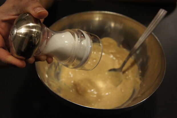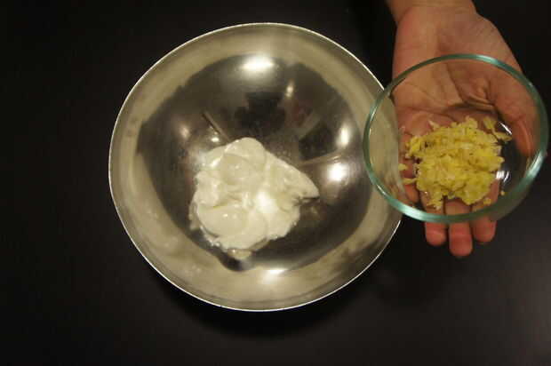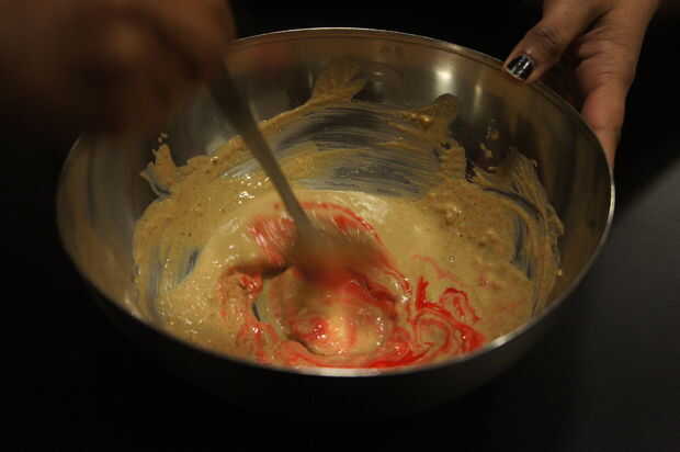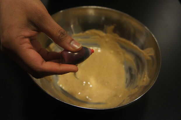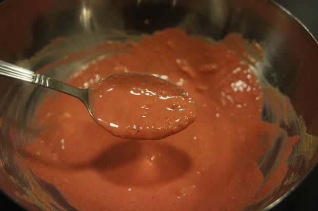 2) añadir unas gotas de colorante de alimentos rojo y mezclar bien.