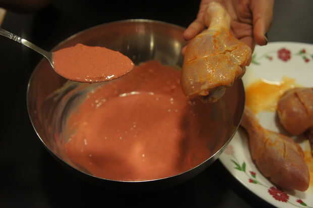 4) cubra el pollo marinado y déjelo reposar en el refrigerador durante la noche o por hora (mínimo).