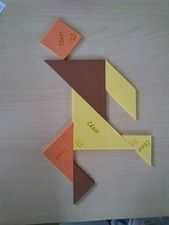 Para el diseño se ha tomado como referencia un tangram en madera. Las medidas se han ajustado para aprovechar el material, adquirido en formato A4 y de 0,4 cm de grosor aproximadamente. Se han utilizado planchas de filtro-regulador colores para hacer tres rompecabezas chinos. El diseño se ha dibujado en Rinhoceros. Se ha utilizado una cortadora del laser del material de para el corte y grabado.