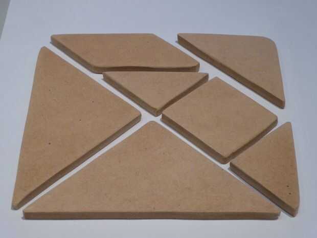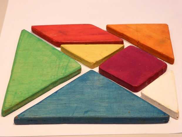 Tangrams están un rompecabezas chino que consta de siete piezas.  Hay dos grandes triángulos de la derecha, un triángulo rectángulo mediano, un cuadrado, un paralelogramo y dos triángulos de la derecha.  Las piezas se combinan para hacer formas de an