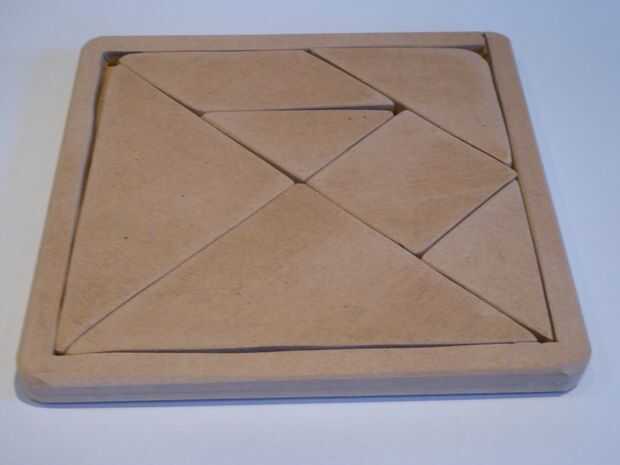Tangrams están un rompecabezas chino que consta de siete piezas.  Hay dos grandes triángulos de la derecha, un triángulo rectángulo mediano, un cuadrado, un paralelogramo y dos triángulos de la derecha.  Las piezas se combinan para hacer formas de an