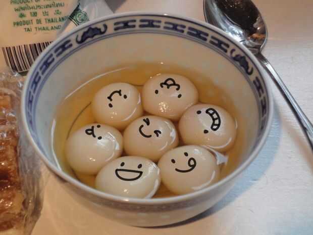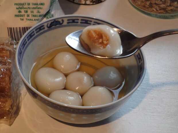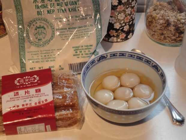 Tangyuan son un dulce tradicional chino suele servirse en fiestas o año nuevo chino o cualquier cosa que se celebra con la familia. Son pequeñas bolas de arroz glutinoso que pueden ser vacía o llena con rellenos dulces o salados y servidos en caldo o jarabe. Las bolas de masa hervida poco ubicado junto en el tazón de fuente representa estar juntos!