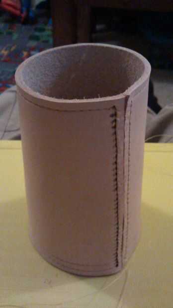 Hilo de rosca ambos extremos de las agujas, empezar a 4-5 agujeros. Puede coser uno para arriba, entonces uno, entonces todo el camino hasta la parte superior y luego hacia abajo, pero las imágenes que he dibujado Mostrar va recto hacia arriba y hacia abajo. Ha arriba, ambos parece que funciona muy bien, la Copa es sólo la celebración de cerveza después de todo. La más completa los hoyos son con hilo el más ajustado el cable llevará a cabo.