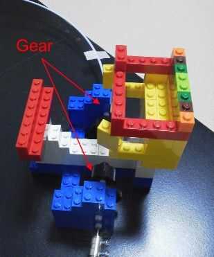 2. un pequeño engranaje, el eje de ella es igual que gear1, transmiten la rotación a gear3.
