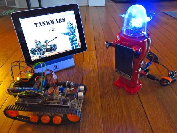 El tanque y la blanco Arduino equipado con módulos de RN-XV WiFly, el iPad utiliza una página PHP para enviar comandos al tanque y leer el estado de la blanco.