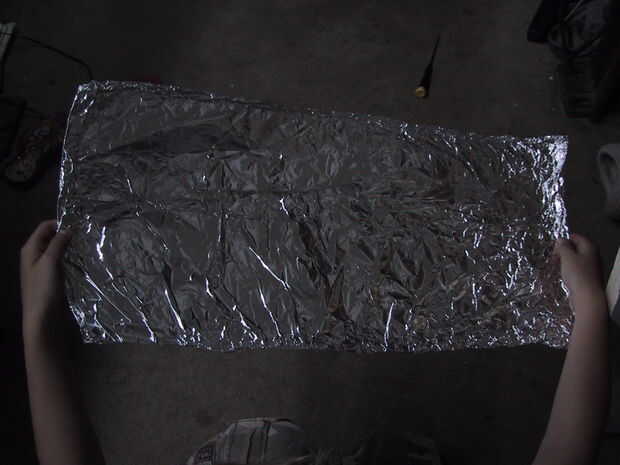 primero corte un pedazo largo de papel de aluminio / desea más entonces la parte inferior del Bronceador por lo que se puede doblar en él es así que se fuerte / ahora corte 2 piezas de papel de aluminio sobre como primer doblado sobre el mismo. Una vez que tenga estas 3 piezas, cinta pato juntos los 2 más pequeños van en el extremo de la cerveza uno.