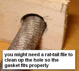 Asegúrese de que el borde de la Junta se ajusta para arriba a través del agujero para obtener un buen sello.