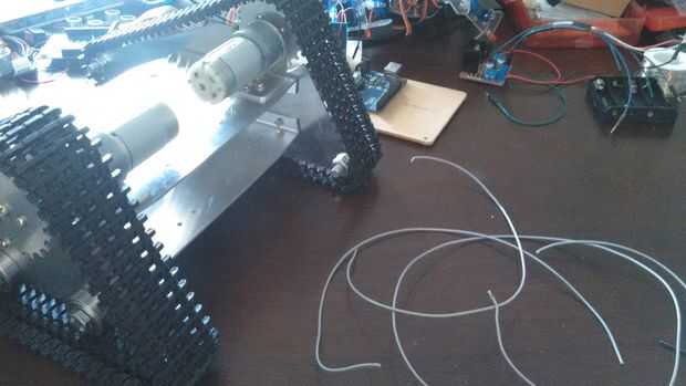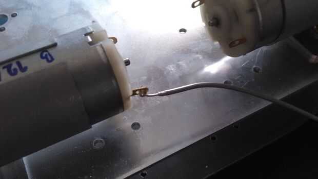 1. Tire de los 4 cables que une a los bloques de terminales del controlador de motor en el paso anterior a través de los orificios en el bastidor del tanque más cercano a los motores.