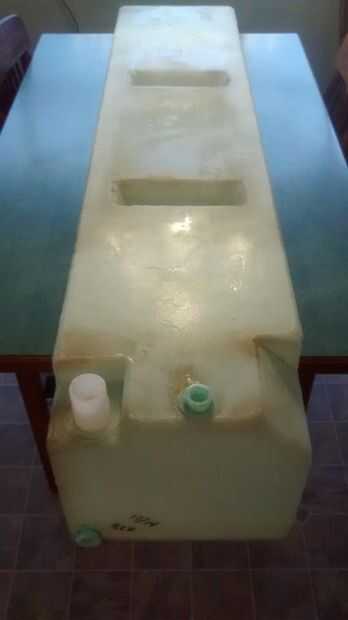 Fui a las piezas de guardar (un 53' van remolque que tengo lleno de piezas de camper) y seleccionar un tanque de agua de un campista previamente había destrozado para piezas.