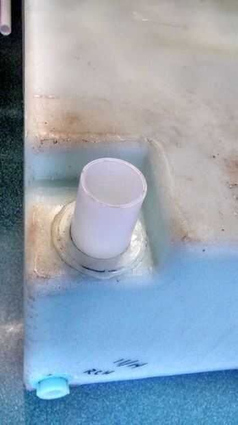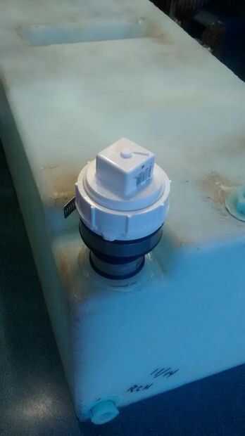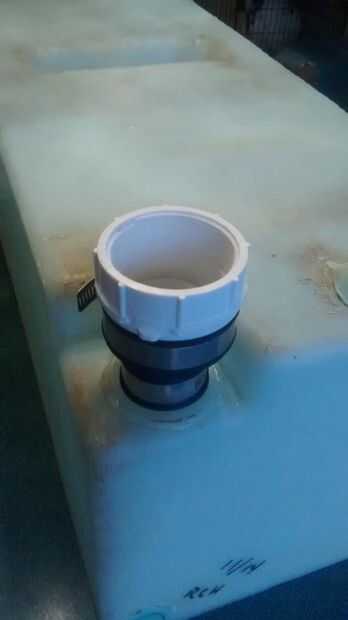 El surtidor de llenado existente en el tanque es una extensión de tubo de poly de 1.25". Algunos adaptadores necesarios para hacer que funcione para mi propósito.