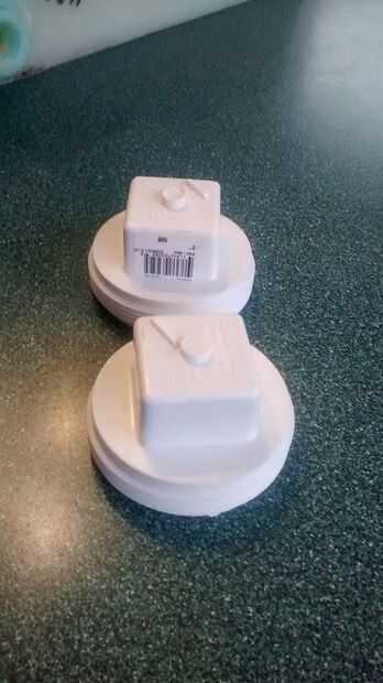 Una tapa de que uso en el transporte para mantener el depósito cerrado, cuando llego a donde yo estoy configurando, utilizo la otra tapa que taladré agujeros, para que entre aire en el tanque para que el agua puede drenar correctamente.