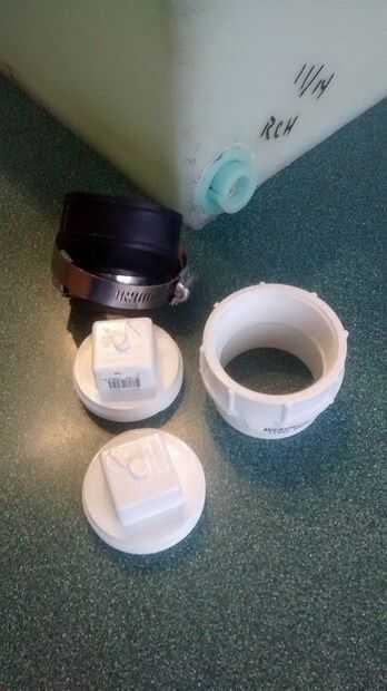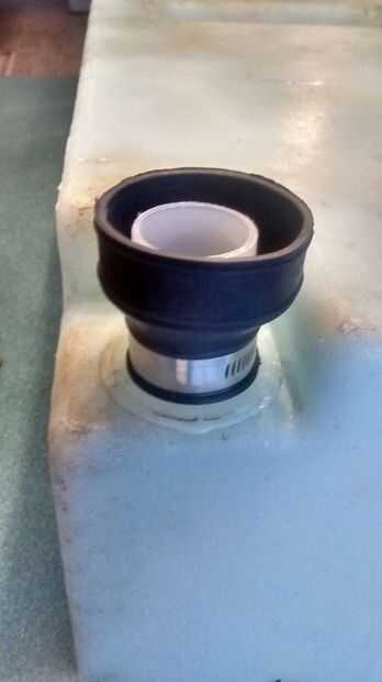 Os adjunto un 1.25" a 2" Fernco conexión a la boquilla de llenado de tanque, entonces una conexión roscada de 2" se resbalará de Fernco conexión, un par de casquillos fueron agregados para cerrar el tanque de...