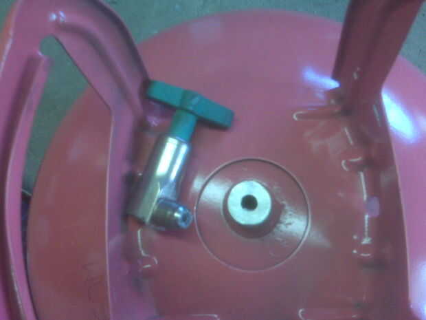 Tuve este tanque helio vacía de un kit de globos de fiesta. Utiliza una sierra para cortar la válvula y aprovechado el orificio de un tubo estándar de 1/4 guarnición. He instalado una camiseta con un niple. Luego añade que un manómetro y un rápido desconexión la conexión. Tenía todas las partes poner alrededor tan realmente sólo me costó 30 minutos de tiempo. con algunos recursos excavación podría hacer lo mismo.