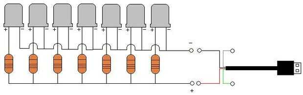 3. en el circuito, conecte temporalmente el cable rojo (+) a la línea donde el ánodo del LED funciona (la línea donde se ejecuta el resistor).