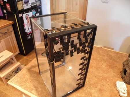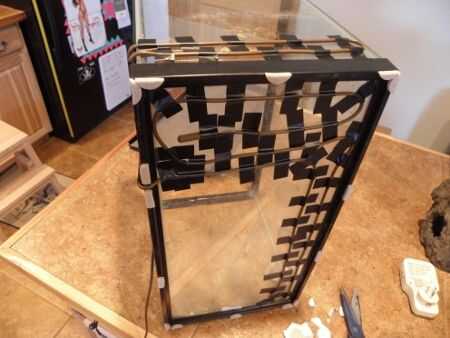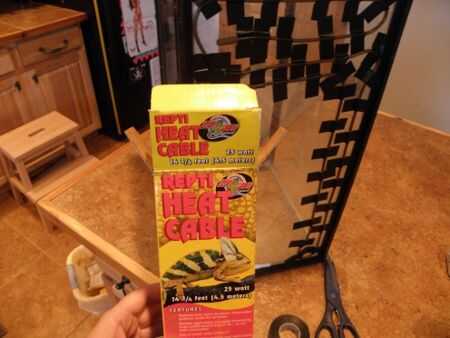 La fuente de calor en la parte inferior del tanque, lo que permite un gradiente de temperatura de la cinta. Envuelve la porción extra del cable calentado alrededor y en el lado del acuario, como se puede ver en las fotos. (El cable tiene una parte cerca del extremo del enchufe que no se calienta, por lo que parte del cable entre el tanque y la salida no tendrá energía caliente o residuos).
