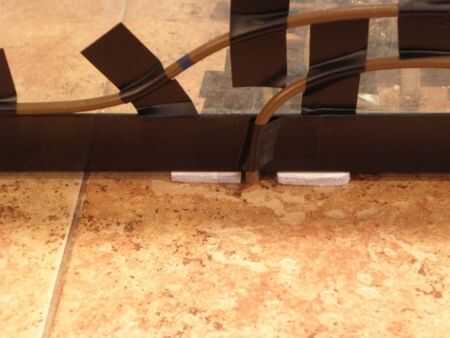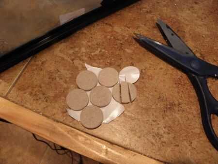 Cortar el fieltro en tercios y usarlos para levantar un poco el tanque, por lo que el calor no construir demasiado y para permitir que el calor cable para pasar bajo el borde sin conseguir dañado.