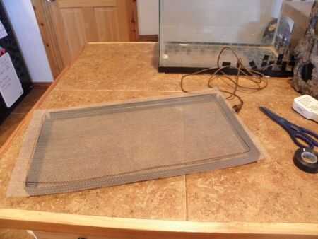 Si usted está haciendo un falso fondo con este método, y va a estar en uso a largo plazo, sería mejor usar una pantalla de nylon, en lugar de la pantalla metálica que reciclé para este proyecto. Exposición al agua eventualmente dañará la rejilla metálica que usé, pero se trata de un tanque de cuarentena, que sólo será en el uso de un par de meses, así que estará bien para este propósito.