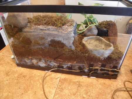 Por una cueva, me encontré una tortuga de registro en el fondo de comercio local, que es hueco y tiene agujeros custodiados. Es grande en comparación con las ranas, pero es esterilizable y con algunos musgos dentro, es bastante grande. También me gusta que es fácil ver dentro de ella, así que puedo encontrar mi ranas fácilmente, ya que están en cuarentena y estoy comprobando sus niveles de salud y la actividad varias veces al día.