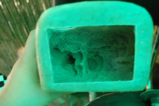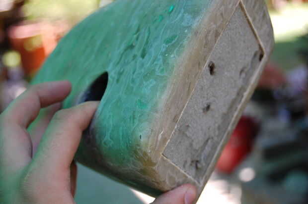 Iba a usar acetona para disolver la espuma después de que instalé el cuello de relleno. Esto no funcionó hacia fuera porque la espuma verde No se disuelve con disolventes. Incluso intenté utilizando un limpiador para eliminar la espuma. Encontré que la espuma de poliestireno es el único tipo que se disuelve con disolventes.