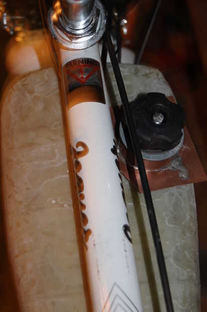 Para montaje, utilicé dos varillas roscadas, tuercas un par, y una mano hecha soporte. Me ajustaron una de las tuercas en el fondo del tanque hacia la parte posterior de la misma, uno al frente y utiliza una clavija de madera para mantener epoxy de los hilos.