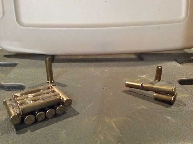 Coloque a un lado el cuerpo principal y tomar la 3 22. Pantalones cortos y una 22. MAG y encolarlos. Para hacer este lugar dos 22. Pantalones cortos en la parte inferior y un 22. MAG en la parte superior para que los frentes todos enfrentan la misma manera. Cuando se seca el pegamento pegar un 22. Corto en la parte delantera de la 22. MAG para que puedan ver la parte delantera de la 22. Corta