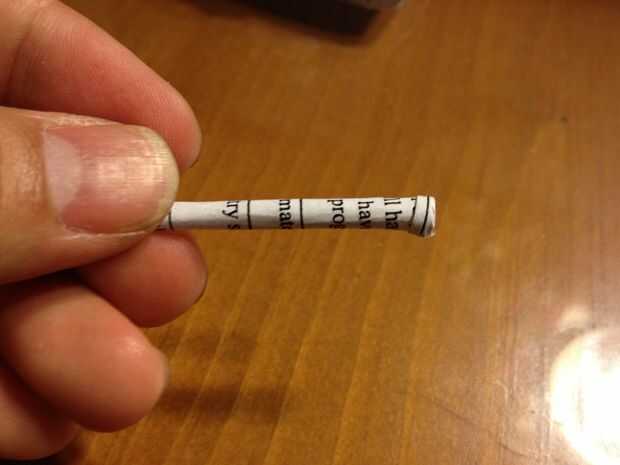 1. cortar el papel al tamaño de 2/3 del tanque. 2. doblar la parte de él. Se trata de la punta del cañón. 3. doble otra vez. 4. luego agarra todo y rodar todo el camino hasta que es como un barril.