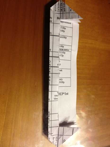 1. doblan ahora todas la pirámide a un lado (no importa que) 2. Entonces agarra el lado entero del objeto y doble del lado hacia medio. 3. luego hacer lo mismo al otro lado. 4. Ahora coge uno de los bordes doblados y doblar al lado. 5. Repita el procedimiento en el lado opuesto. 6. luego doblar las pirámides hasta normal. 7. doblar los lados más lejanos de la pirámide hasta la cima de la pirámide. Do esta a sólo una de las pirámides que hiciste. Superior o inferior, no importa que, a su elección. 8. a continuación Dale la vuelta :)