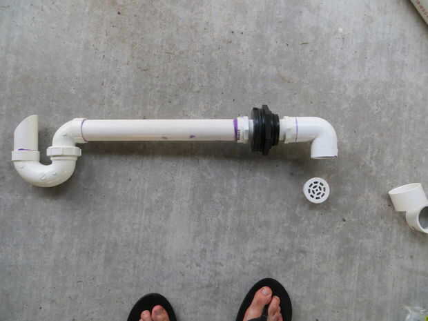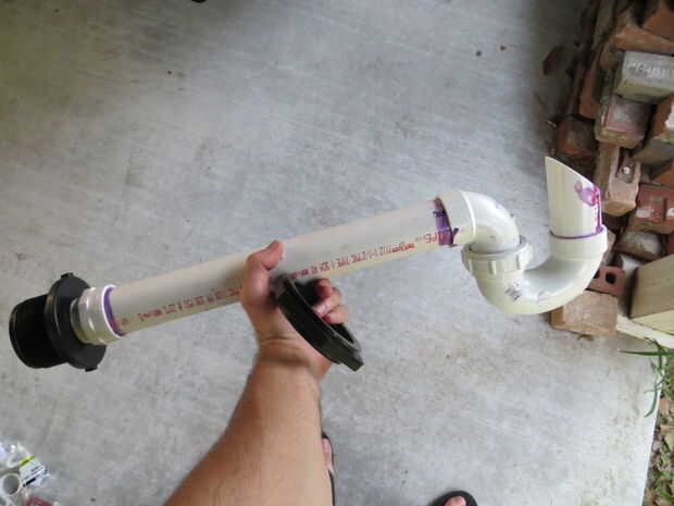 Al final de la trampa en P Coloque una sección corta de tubería de 1 1/2" corte en un ángulo (esto permite cualquier flotante basura con sifón a través del rebosadero y más aumenta la calidad de su agua recogida)