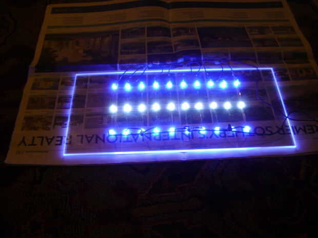 Por último, junté algunos cables para conectar la matriz a un adaptador de suministro de energía. El adaptador de corriente fue caliente pegado en el lado del plexiglás (eventualmente).
