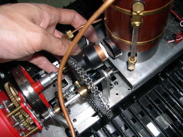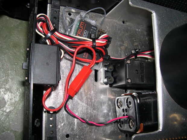 Empuje la batería para el espacio debajo de la caldera y utilice la cinta de Velcro para sujetarla. Encender el transmisor primero, que el receptor y probar y asegúrese de que ambos servos funcionan correctamente. En este punto establecer ajuste de transmisor y punto final ajustes si es necesario, revisar el manual de tu equipo de radio para saber cómo hacer este paso. Esto básicamente sólo establece Dónde está la posición central para los servos, y hasta qué punto puede girar. Asegúrese de que los servos empuja/tira el embrague, y dirección, frenos, lo suficiente para trabajar, y no demasiado más de par, o puede tira los engranajes dentro del servo.