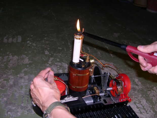4) una vez que el manómetro alcance unos 20-30 psi, es el momento de ejecutar el depósito! Abrir la válvula para permitir que el vapor a la turbina de la energía, escuchará una vuelta dulce sonido, como las potencias de la turbina para arriba. El tono cambia como cambia de RPM de la turbina. Dejar girar para arriba y controlar el embrague para salir adelante. Verifique que usted puede ir hacia adelante, atrás y giros en ambas direcciones. Si hay cualquier problema, apague el gas primero, permiten la salida de vapor totalmente hacia fuera y la caldera y enfríen los tubos, antes de intentar controlar el problema. Te recomiendo usar guantes cuando activar o desactivar la válvula de vapor, pues con el tiempo sería lo suficientemente caliente como para causar ampollas en los dedos.