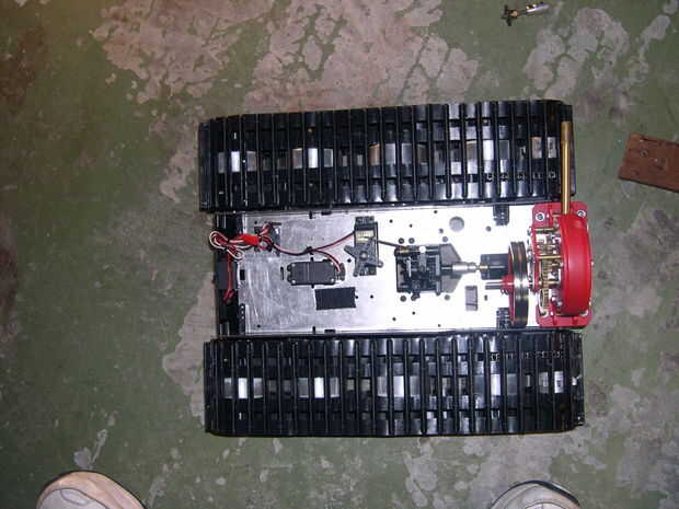 Necesita ampliar el chasis un poco para hacer espacio para la turbina y piñones. He utilizado [K & S aluminio hojas para la base, pero usted puede usar cualquier hoja de metal que es lo suficientemente gruesa como para ser robusto pero no demasiado pesado. Cortar el aluminio a la medida con una herramienta Dremely perfore agujeros en el Monte y el chasis, utilizando algunos de los agujeros originales. Bloqueo para asegurar la base del hilo de rosca.