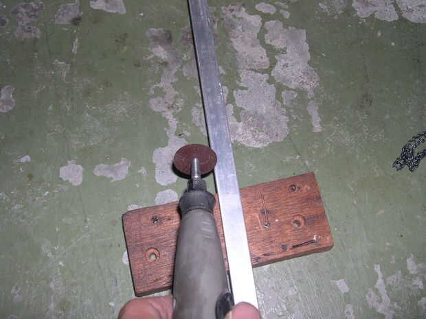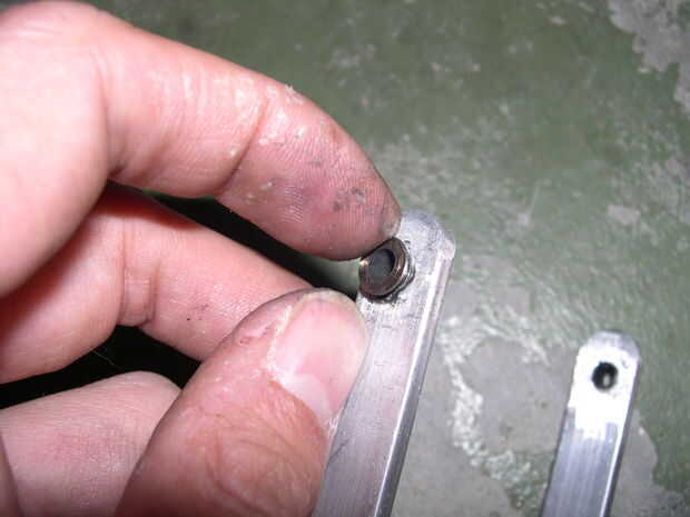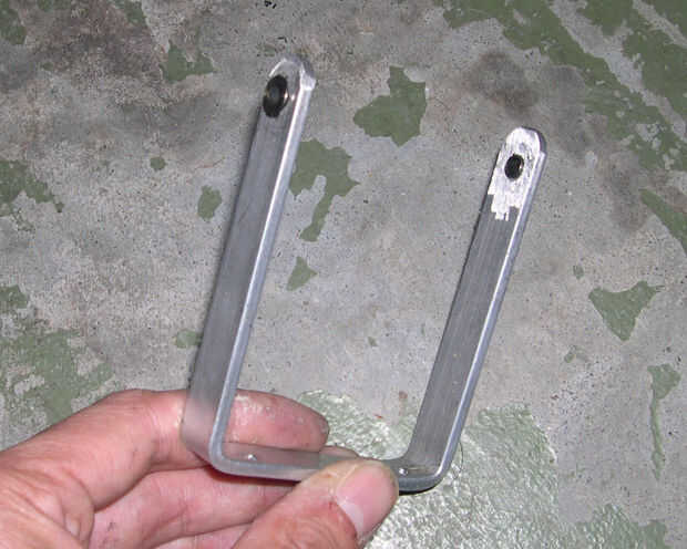 Utilicé aluminio porque es ligero y fácil de doblar. Puede encontrar a todo tipo de tamaños y formas en su ferretería local. Con una herramienta Dremel con rueda de molino, usted puede cortar el aluminio suave fácilmente. Después de cortar la longitud deseada, puede sujetarse a un tornillo de mesa y doblar a mano. Perforación es también fácil de hacer con un taladro eléctrico. He encontrado estos collares de eje con brida puesta, lo siento pero no tengo ni idea donde o cual vehículo de R/C vino de. Sólo hay algo que es ligeramente más grande que el eje, que proporciona la rotación lisa. Perfore un agujero del tamaño del collar y empuje o martillo suavemente el cuello en. Prueba la alineación deslizando un eje de 4mm, para asegurar que está alineado y gira suavemente.