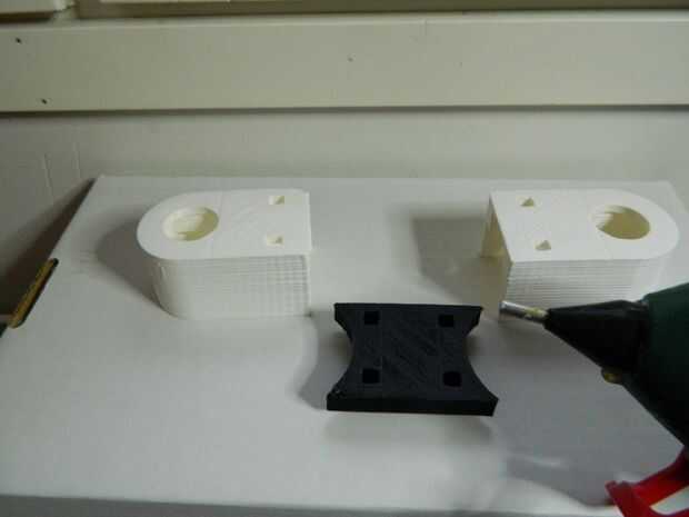 Montaje de las ruedas como se muestra en la imagen. Utilice pegamento caliente o lo que gustes para asegurar que las piezas estén en su lugar.