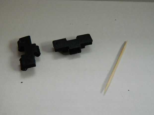 Usar fuerza para empujar el palillo a la pista. Use taladro pequeño si es necesario para agrandar los orificios exteriores.