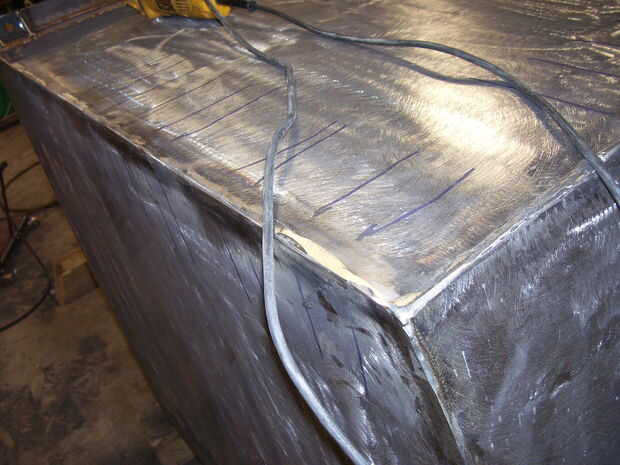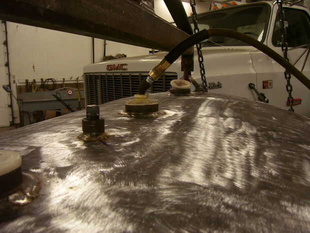 Ahora que el tanque está "segura" a presión, todo lo que necesita hacer es tomar algo de agua jabonosa y frotar sobre las soldaduras. La razón para hacerlo ahora en vez de antes de pulir la soldadura hacia abajo es porque usted puede moler una soldadura hacia abajo lo suficiente para se escape. Una de las mejores formas de aplicar el agua jabonosa es recorrer su dedo desnudo a lo largo de la solución sobre las costuras. Se forman burbujas justo debajo del dedo, más rápido y más claramente de esta manera. Asegúrese y marque claramente donde las fugas son para que sepas qué moler hacia fuera y arreglar. Y si haces las marcas grandes que suficiente no tienes que continuamente vuelva a revisar todo, sólo lo arreglar.