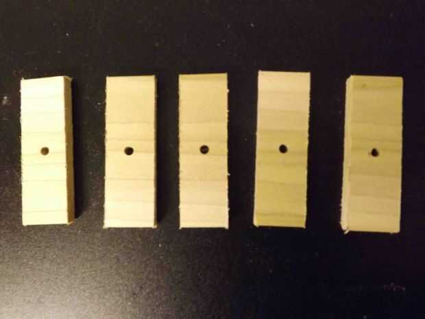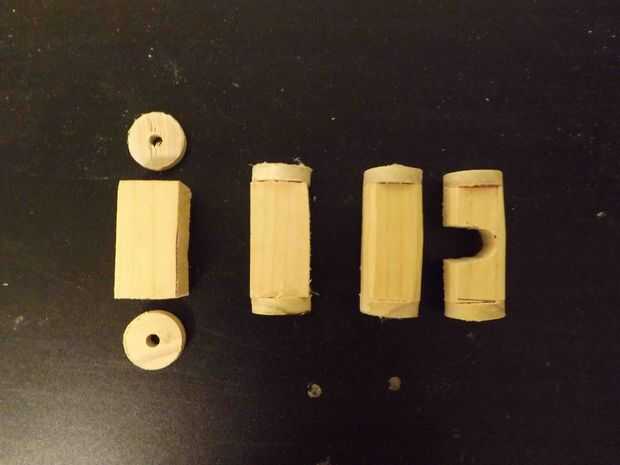 Se ponen tres trozos de madera con una muesca en cada uno como se muestra en la parte superior de la estructura de la pista para apoyar la pista.