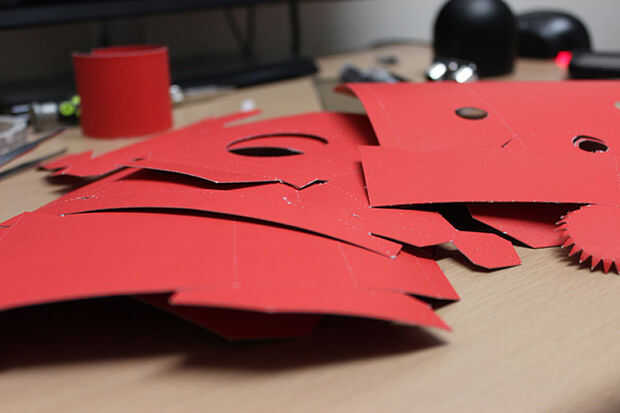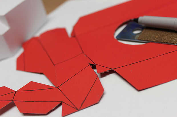Fui de los pliegues con lápiz porque el papel de construcción rojo bled white al corte. Esto es desafortunado, pero más bien unoticable.