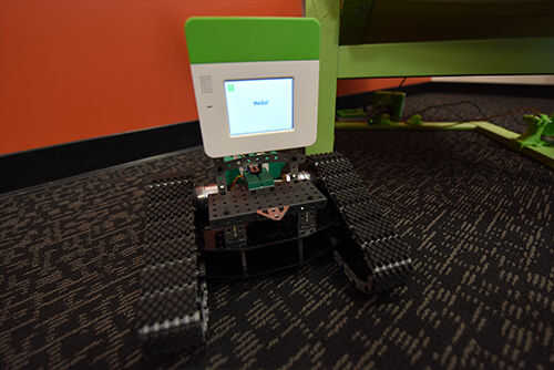 Después de ensamblar el robot pisadas con el Kit de chasis Tri-Track, Monte un Kinoma crear en la base.