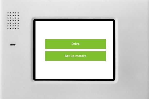 Ahora que todo está conectado para arriba, ya estamos listos para calibrar la velocidad del robot para rango de salida de voltaje de su diseño. La configuración es fácil. Ejecución tanque-robot en el crear de Kinoma enganchadas a su robot y el control de tanque en el Kinoma crear que está leyendo los valores de su tensión. Recuerde: ambos dispositivos de Kinoma crear tienen que estar en la misma red Wi-Fi para comunicarse. El software asume que los valores más altos de tensión significan movimiento hacia adelante. Tan en una escala de 0 a 1, 1 sería completa hacia adelante y 0 sería inversa completa. Una vez que ambas aplicaciones se están ejecutando, verá dos botones: "Drive" y "Configurar motores", en la pantalla de Kinoma crear de tu robot. Pulse el botón "Configurar motores".