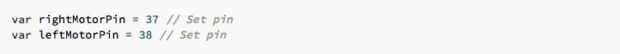 Cuando su diseño salidas valores de tensión adecuados, darles de comer al Kinoma crear utilizando el delanteros pernos o pins 37-48 en la parte posterior (excepto pines etiquetados tierra). Tenga en cuenta que la tensión máxima en cualquier clavija de entrada debe ser de 3.3 V. Después de elegir cualquiera de estos pines, vaya tomain.js que se encuentra en el archivo etiquetado como 'fuente' en el control de tanque y cambiar el valor de las variables con la etiqueta: rightMotorPin y leftMotorPin a sus respectivos números.