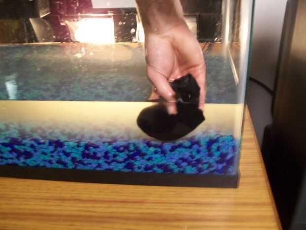 Limpie el interior del vidrio con un trapo limpio o toalla de papel.  No use cualquier productos químicos de limpieza como el jabón para ayudar a limpiar el cristal, como esto puede dañar a tus peces.  Si tienes un Pleco, sugiero salir de uno de los lados del vaso sin tocar para preservar algunas algas para el plecer de.  Usted puede también limpiar el exterior de la pecera si es necesario.  Asegúrese de enjuagar cualquier artículos de decoración, así haciendo agua sobre ellos.