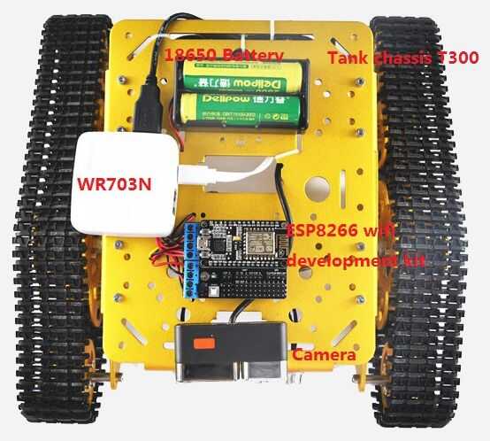 El hardware contienen: iPhone/iPad, chasis de tanque (con Esp8266 dev kit interior).