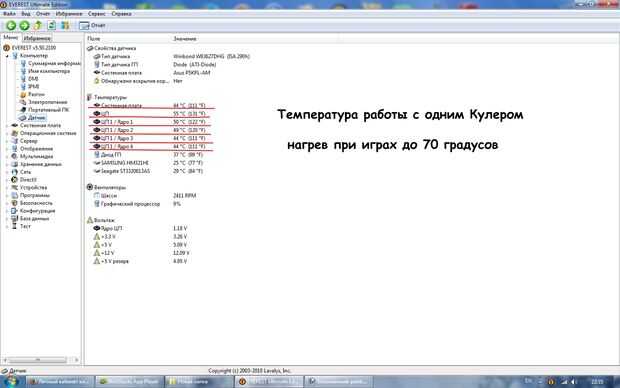 Ver fotos de... en la primera foto muestra el trabajo de la computadora con un emulador incluido y refrigerador. CPU se carga y se calienta... pero cuando juegos de temperatura a 70 grados